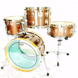 $1,400.00Want a custom kit where you get to pick the sizes you want? We specialize in small compact drum kits for drummers needing space saving equipment without sacrificing sound. Four Piece Kit $1,099. Specify the sizes you want in the box below. Sizes available are up to 12″ in depth and nothing larger than 22″ on the bass drum.